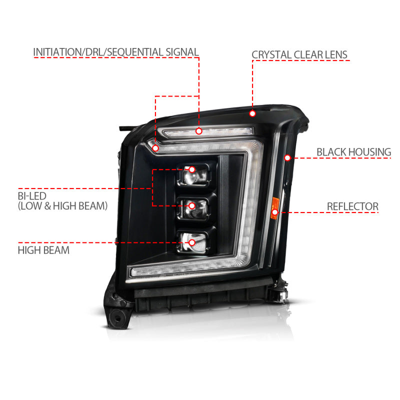 ANZO 15-20 GMC Yukon (Incl XL - Factory Halogen Models) Full LED Proj Headlights Black - Driver Side