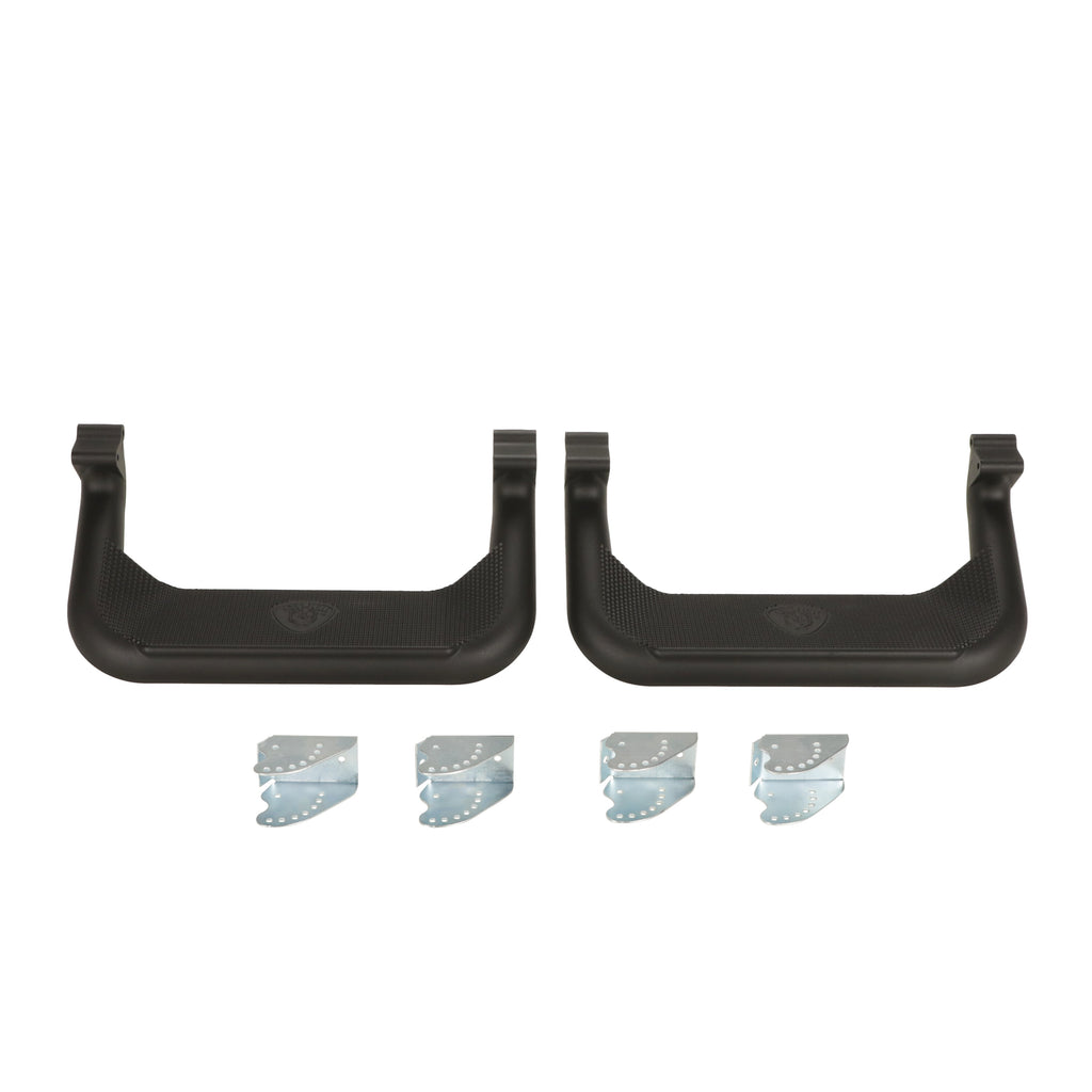 Exclusive multi-mount system. Made of corrosion resistant, durable cast aluminum alloy. Rugged tread pattern provides a safe and attractive non-slip surface. Rocker panel installation provides for the strongest and easiest installation of any step products. Unique design gives the vehicle a rugged off road look, while being a stylish accent for today's vehicles.