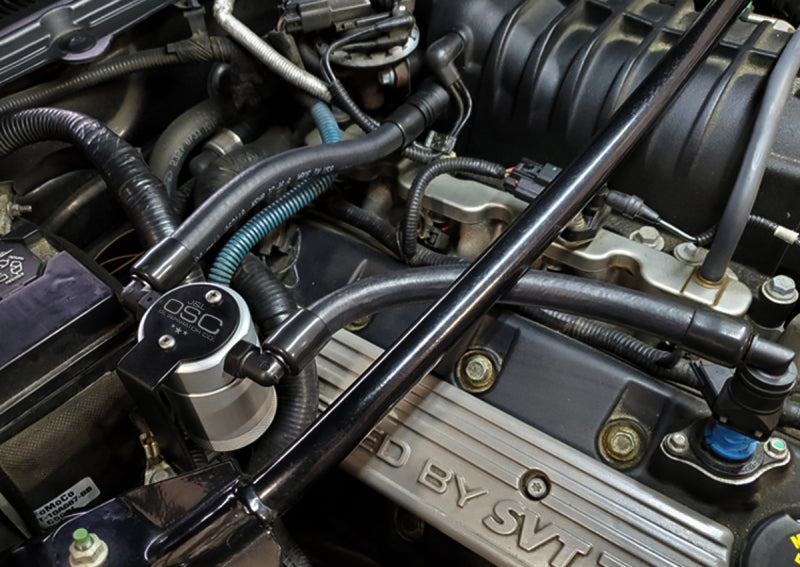 J&L 07-14 Ford Mustang GT500 Oil Separator 3.0 Passenger Side (Remote Mount) - Clear Anodized