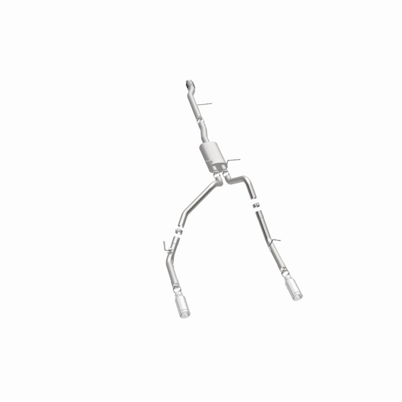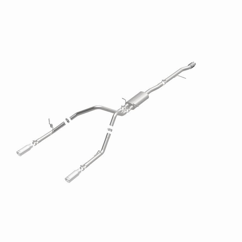 The MagnaFlow Street Series 15268 brings out the personality of your Truck with our signature resonant, powerful engine tone and dyno-proven performance. Thanks to its fast-flowing, mandrel bent 3in. main piping and 1 Straight-Through mufflers ending in a Dual Split Rear exit with 4in. Polished Clamp-On-Double Wall-Angle Cut-Rolled Edge tips, this Truck exhaust kit has the performance chops to match its sporty sound and appearance. Upgrade your ride to the next level with an exhaust that has the pipes to put other Truck’s to shame. With this system your vehicle will be producing Agressive exterior and Moderate interior sound levels while leaving other cars and trucks feeling envious at every stoplight. Exhaust kit 15268 features a cat-back layout that replaces your ride’s stock exhaust components from near the catalytic converter on back. Extensive 3D scanning during development has resulted in a direct-fit design that you can easily install yourself. 15268 is produced using CNC precision robotic manufacturing techniques and is backed by MagnaFlow’s 1-year limited finish warranty and limited lifetime construction warranty.