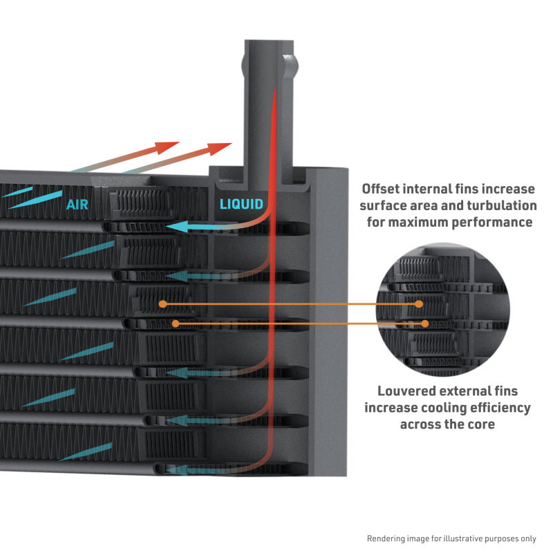 Heat is one of the biggest threats to your transmission, especially when you're pushing your 2025+ Ram 1500 3.0L Hurricane hard, whether towing heavy trailers, tackling rugged off-road terrain, or hauling equipment for work. When you need to tap into your truck's impressive power, keeping transmission temperatures under control is essential. That's why we engineered a direct-fit transmission cooler built specifically for the Ram 1500.--This cooler works alongside your stock system to add serious cooling capacity right where you need it most. With a core volume that's 60% larger than stock and 25% greater fluid capacity, it's designed to handle the extra heat generated during demanding work and play. The tube-and-fin core maximizes cooling efficiency through superior heat transfer, helping reduce stress on your transmission by keeping fluid temperatures in the optimal range. Lower temps mean less wear, better performance, and a transmission that's ready to go the distance.--Every component in this kit is engineered for a hassle-free installation and long-term reliability. Quick disconnect fittings make connections simple and the removable mounting bracket gives you easier access when attaching hard lines. You won't need to remove the front grille, so installation is straightforward and won't eat up your weekend. For extra protection against corrosion, the robust powder-coated finish stands up to whatever the road or trail throws at it. Designed, engineered, and tested right here in the USA, this cooler is compatible with both OEM and Mishimoto products for seamless integration.--Whether you're towing for work, exploring off the beaten path, or simply want the peace of mind that comes with a cooler-running transmission, this upgrade delivers the efficiency and protection your Ram 1500 3.0L Hurricane deserves. Like all our products, it's backed by the Mishimoto Lifetime Warranty.