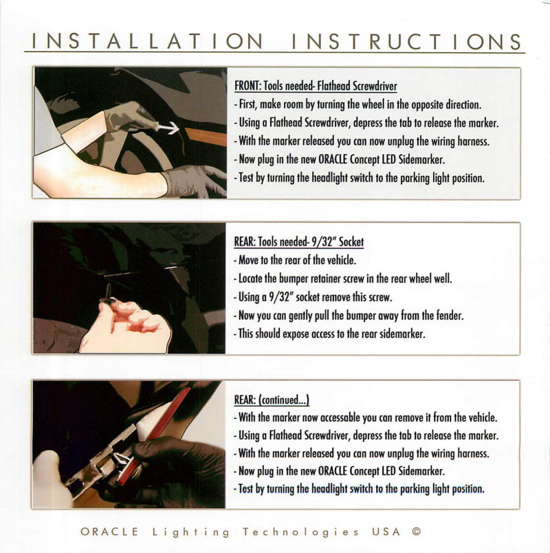 Concept SMD Sidemarker lights are complete sidemarker replacements fitted with high powered 3528 Bridgelux LEDs that produce a laser-like appearance. These are available with Clear or Tinted lenses and painted to match any of the factory paint codes. ORACLE Lighting is proud to offer the brightest side markers on the market to our customers. Do not be fooled by "too good to be true prices" ORACLE Lighting originated LED sidmarkers, imitators don't measure up to our quality.