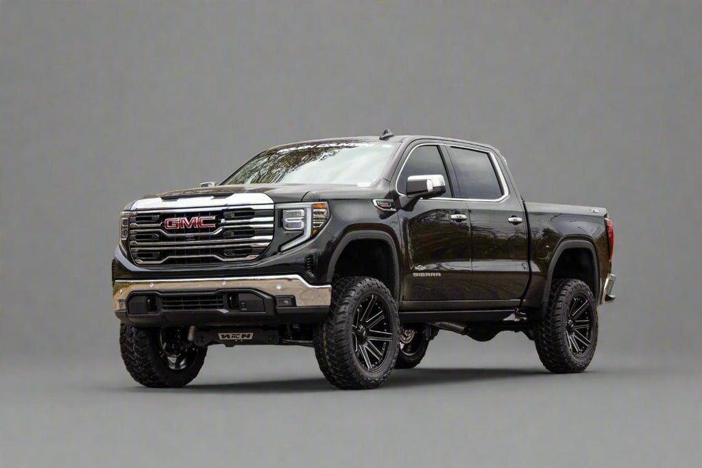 Explore New Heights: GMC's fourth generation Sierra 1500 features an impressive all-new design that’s built from the ground up, with aggressive angles and head-turning stylings that fit in beautifully when transformed with Rough Country’s 6-inch Suspension Lift.