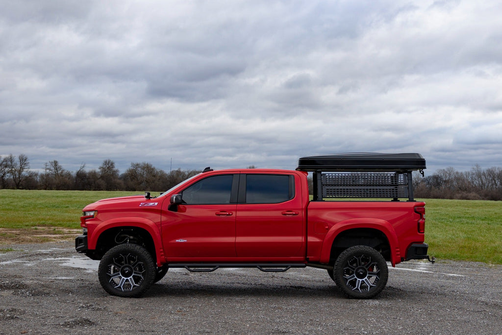 Upgrade your Chevy Bed.The Chevy Bed Rack from Rough Country gives you the flexibility to carry bulky cargo and outdoor equipment in your truck bed. It's just right for loading ladders, roof racks, bikes, and more with ease. And whether you're headed out for a camping trip or working under the sun on a job site, this bed rack keeps all your equipment close at hand.