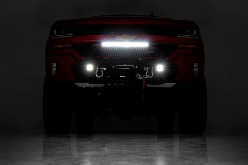 Add a professional recovery and lighting solution to your vehicle with Rough Country’s EXO Winch Mount System for Chevy 1500 Trucks. This innovative recovery solution bolts-on right over the factory bumper, giving your truck a wealth of new abilities and aggressive good looks.