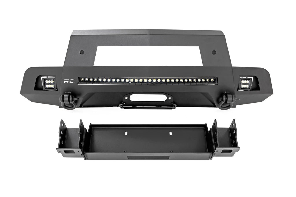 Rough Country's Hidden Winch Bumper provides the best of both worlds offering a stylish new approach for equipping a recovery system to your vehicle. Featuring a standard 4.5in X 10in 4 bolt Winch Mount, our hidden winch bumper can fit most standard size winches up to 12,000 lbs and does NOT impede airflow to the radiator. Boasting a combined lumen output of 14,880 between the included 30" and two 2" led pods taking to the road less traveled is a worry of the past.