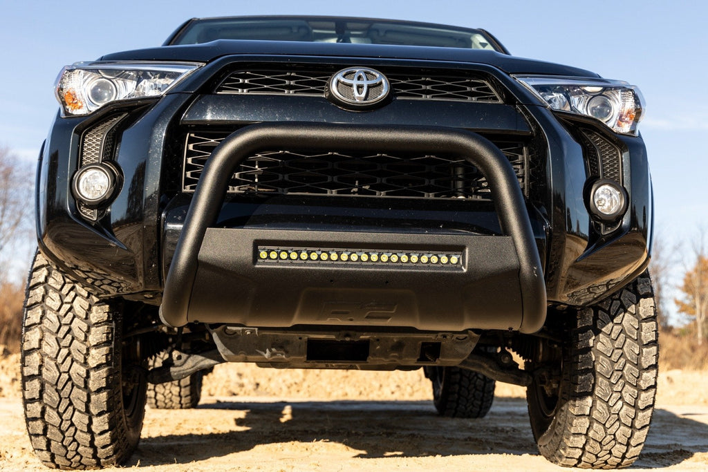 It's the ultimate combination of form and function with Rough Country's durable, new Bull Bars. Protect the front end of your truck with our beefy yet stylish Bull Bar kit. Featuring a 3-inch diameter tube design and corrosion-resistant finish, this Bull Bar package offers superior protection from hazards of the road and trail.