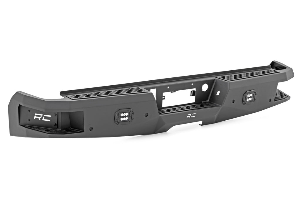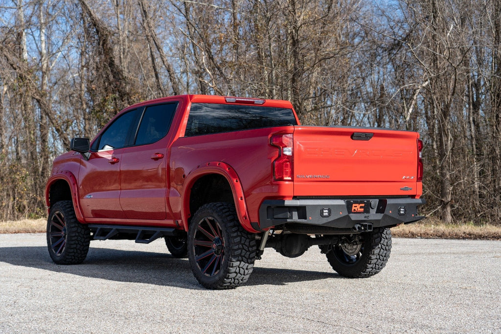Give the rear of your truck an aggressive, new appearance with Rough Country’s Rear LED Bumper. This easy-to-install upgrade gives your truck an improved look and better functionality. Each bumper features two Rough Country Black-Series 2in LED Flush Mount Cubes for rear illumination, and two integrated steps for easy access to the bed. Rough Country’s Rear LED Bumper is made of a durable, all-steel construction that’s ready to handle whatever you dish out. Each bumper also includes sensor relocators to allow you to retain the vehicle’s anti-collision system. Unlike some aftermarket bumpers for this model, Rough Country’s LED Rear Bumper allows you to retain the factory receiver hitch for towing. Complete the look with Rough Country’s Front LED Bumper for a total transformation of your truck. Includes a 3-year Warranty!